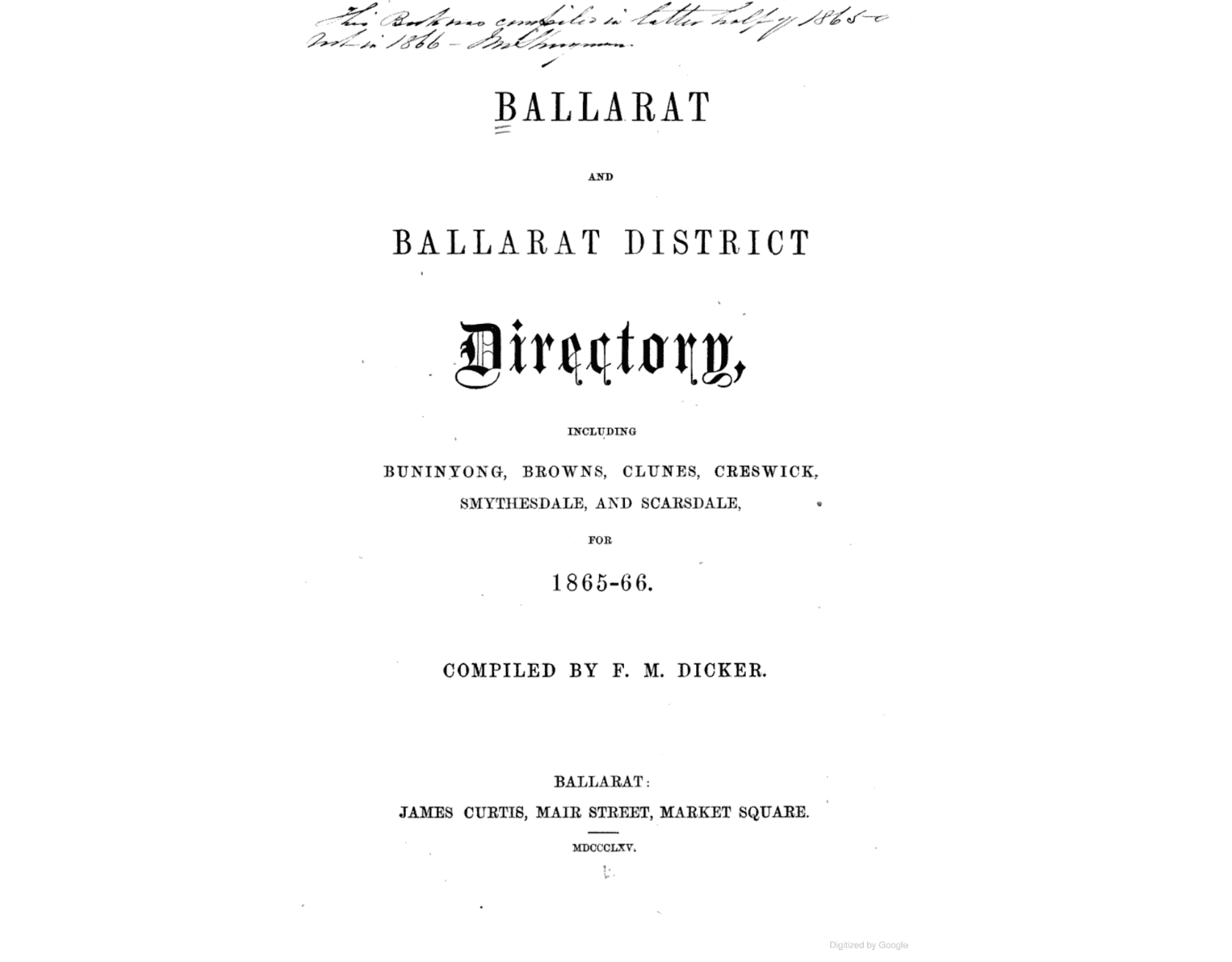 Ballarat Libraries advises this material is part of our heritage collection— it provides evidence of past attitudes and contains information which may be culturally insensitive. It may include words and terms which are offensive to Aboriginal and Torres Strait Islander peoples. It is a record of the past and it should be viewed and interpreted in that context. It may include images and names of deceased people. This material does not reflect the views of Ballarat Libraries.